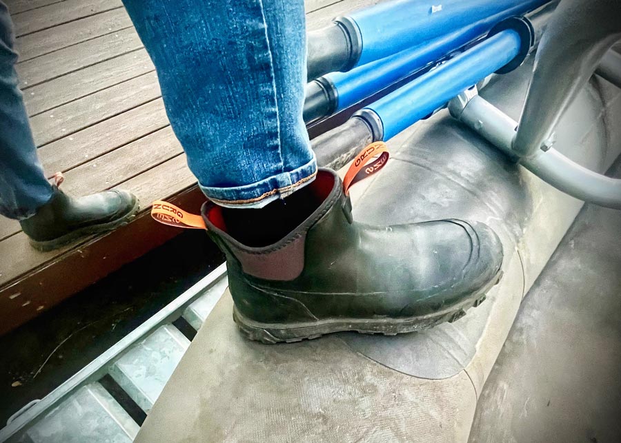 The author has put in a lot of days in the Grundens Deviation 6” Ankle Boot, but they’re still going strong. Photo: Rick Mikesell
