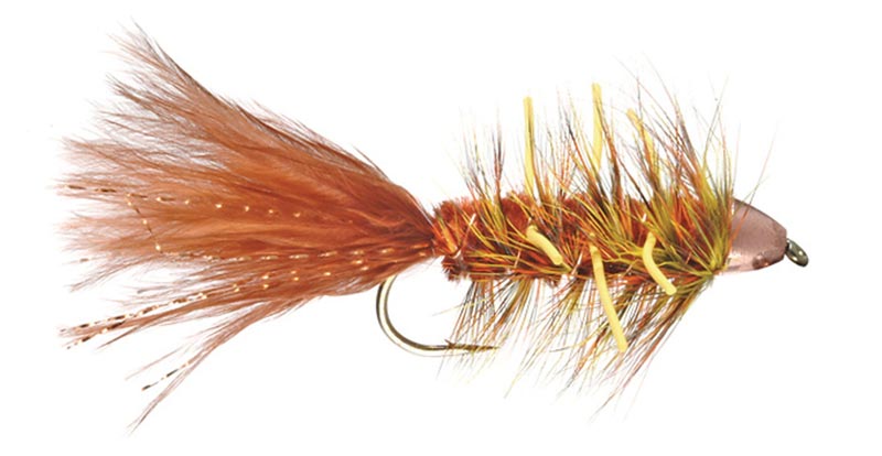 This streamer looks like it was designed for late October. A burnt-orange chenille body, brown marabou tail, and gold cone give it the glow of fading aspen leaves. Created in Colorado by guide Tim Heng, the Autumn Splendor is part Woolly Bugger, part Girdle Bug, and all business when the water cools. It works anywhere trout are bulking up for winter, and its color palette hits the fall mood perfectly. (Tying instructions.)