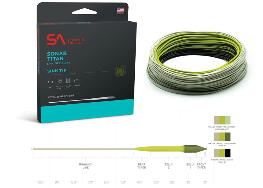 Sink-tip lines feature a section of sinking line at the front end, followed by floating or intermediate running line.