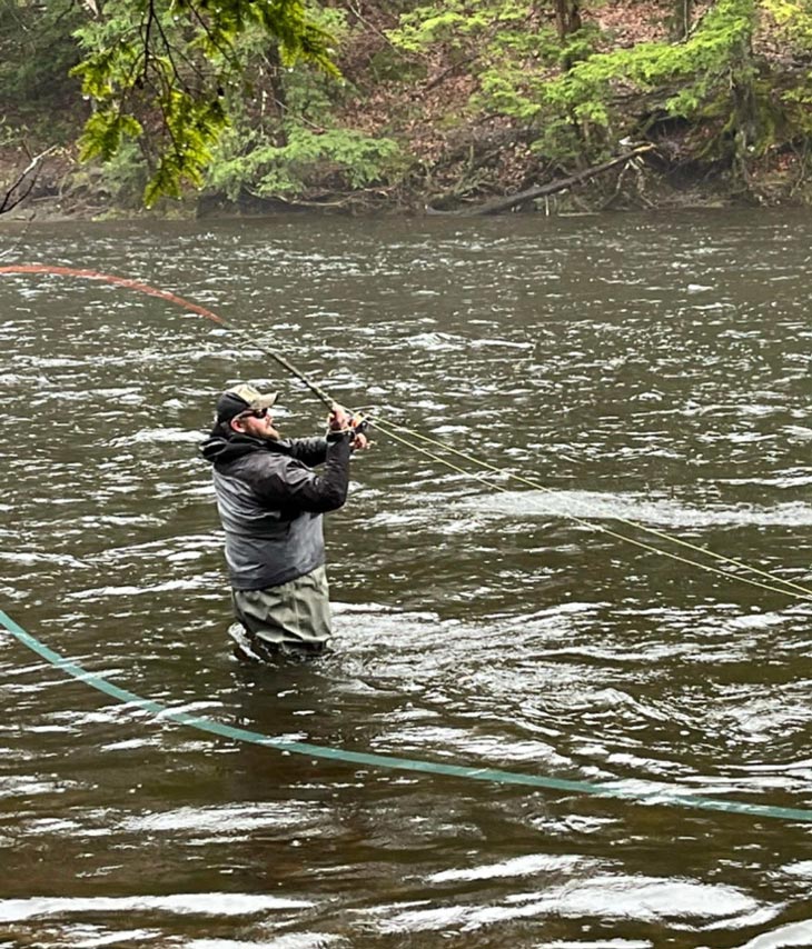 It’s important to note that if you’re fishing for salmon or steelhead, the fly should remain steady as it swings with no additional movement, allowing the long flowing materials to do their job. However, if you’re fishing for trout, you can add in periodic flicks and jerks as the fly swings to trigger the more predatory trout into striking. (Click here for more on swinging speed and depth.)